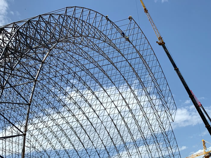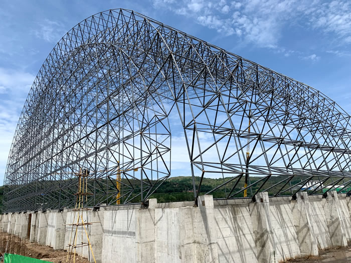 (2)网架加工前应对现场尺寸进行复测,确认无误后方可进行加工、安装;网架制作、运输、安装应遵守《空间网格结构技术规程》JGJ7-2010、《钢网架大渡口螺栓球节点》JG/T 10-2009、《钢网架大渡口螺栓球节点用高强度螺栓》 GB/T 16939-2016、《大渡口钢结构大渡口工程大渡口施工规范》 GB50755-2012、《大渡口钢结构大渡口工程施工质量验收标准》 GB50205-2020。